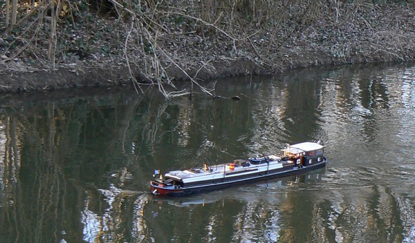me voila sans moteur aux beau muillieu du chenal avec un courant plutôt rapide, je savais que le bateau méme charger il ne passerait pas sous la passerelle et que ci il passait il y aurait pas mal de casses et je me retrouverais dans le barrage 30 métres plus bas, heureusement qu' il y a find... NON heureusemement que les antennes des radios commandes son grande je me suis quand méme mouiller les pied, la prochaine fois je choisi une eau plus calme, j' ai quand même réussi a faire deux cliché pas génial mais mieux que rien.