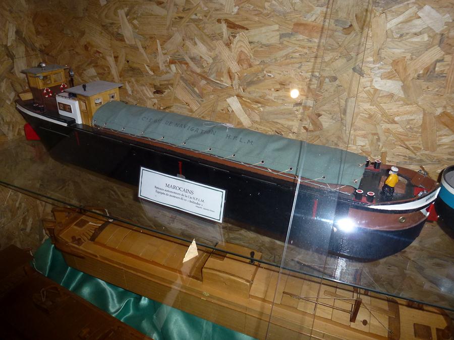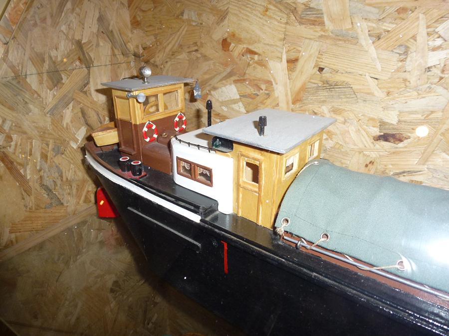 Elle est exposée au musée de la Batellerie de Saint-Jean-de-Losne, et a été réalisée par Jeanine Hornez, ancienne marinière du LATONA. J'ai d'ailleurs pu discuté avec elle devant la maquette ! Il se trouve que son père était sur ce bateau, et c'est dessus qu'elle a appris le métier... (le musée expose également plusieurs autres de ses réalisations)