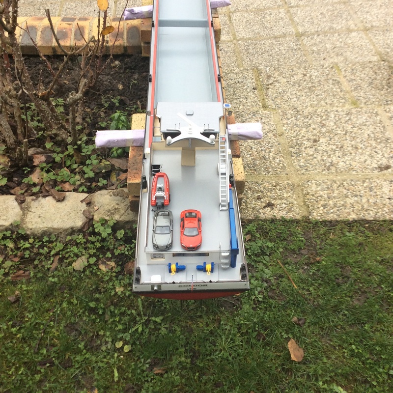 maquette du CONDOR chantier wroclaw (pologne) de 2006.maquette réaliser au 1/50 éme (2,20m x 22,9cm)moteur principal et propulseur d'étrave.
