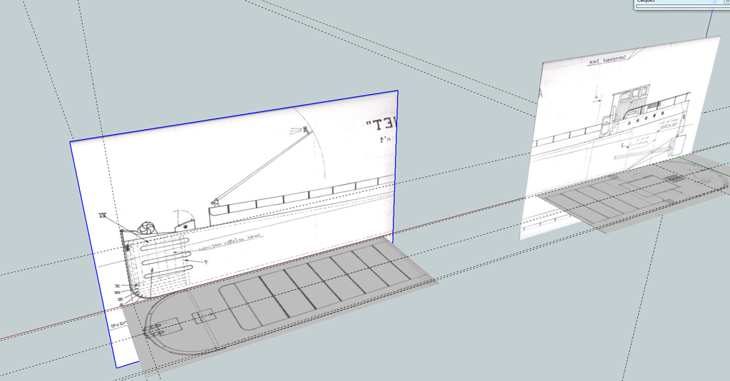 Travail de remise à l'echelle d'apres des photos et superposition via le plan