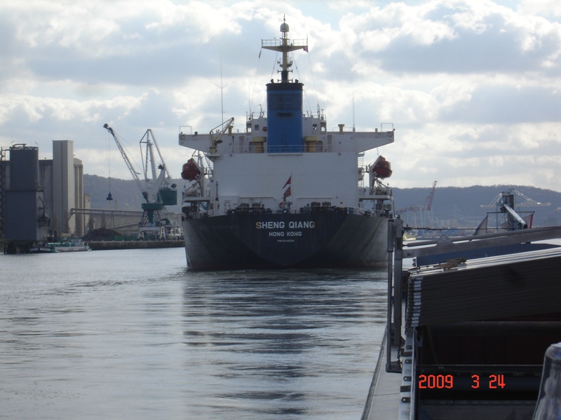 en route pour aller charger a Berville, nous avons suivi un cerealier chinois en 2009 dans le port de Rouen