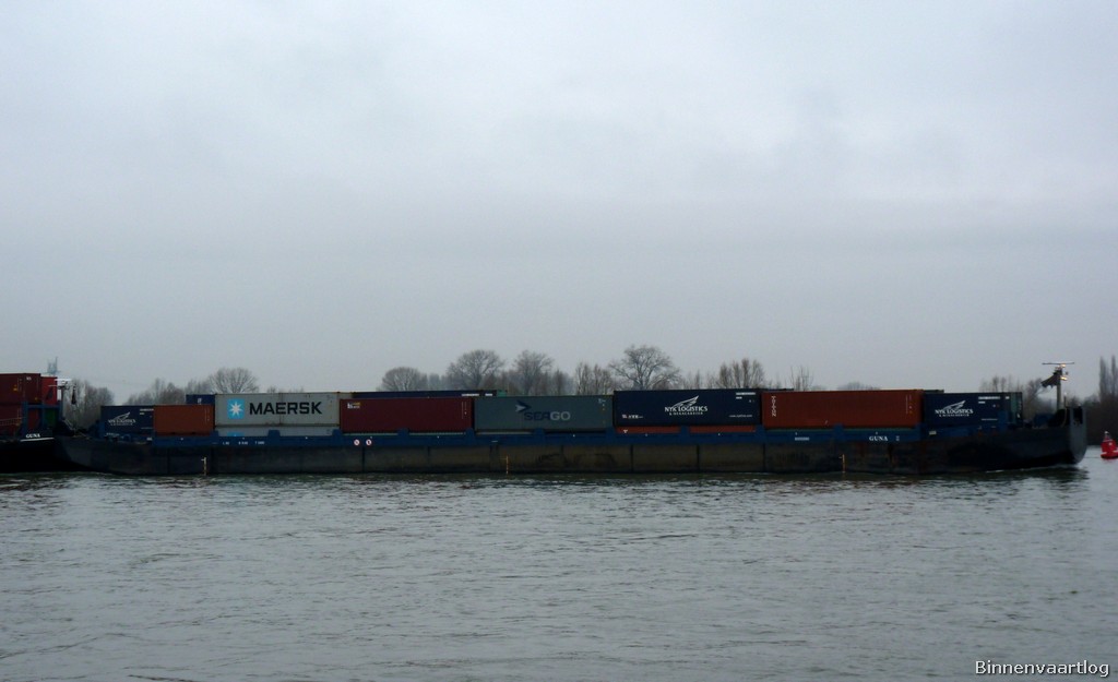 Guna II , 89,92 x 11,45 x 3,49 , Bouwjaar 2000 , Werf Fulton in Hemiksem ( Belgie ) , 540 pk Caterpillar van Tiem hekschroef en 610 pk Caterpillar van Tiem boegschroef , eigenaar P. Oom in Kapellen , ENI ENI 06003590