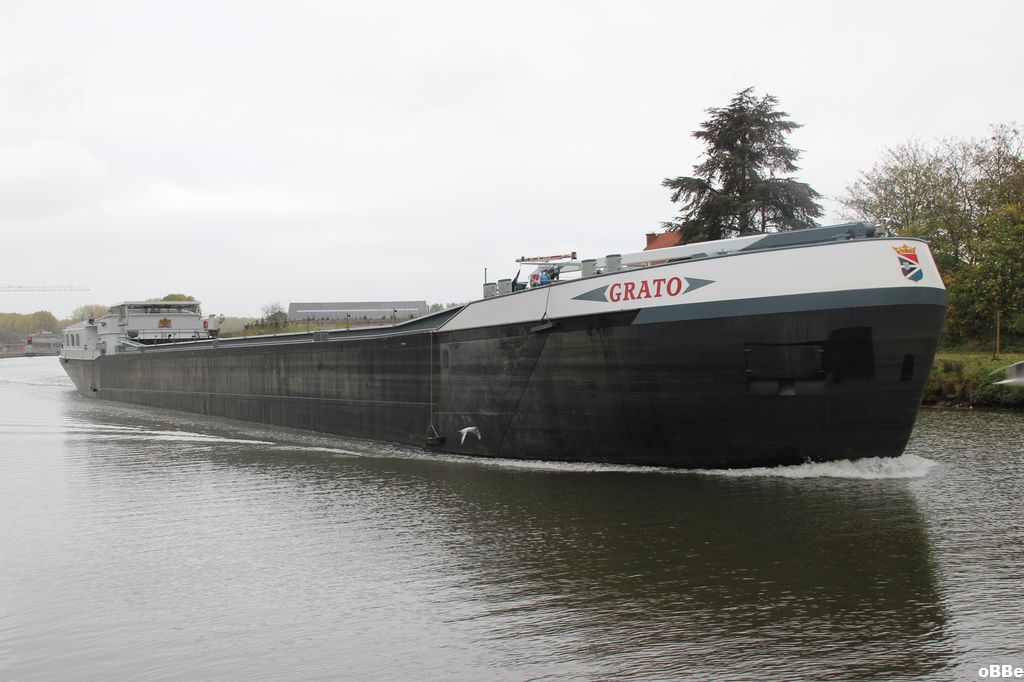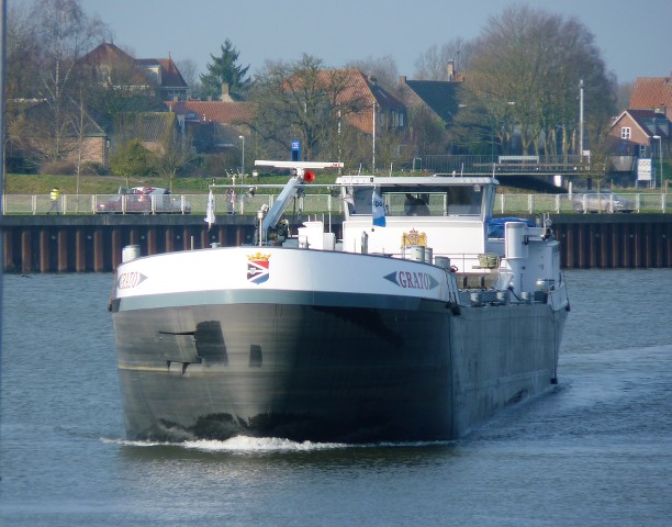 Grato , 80,00 x 8,50 x 3,57 , 1697 ton , Bouwjaar 2011 , Werf Poppen in Zwartsluis ( Nederland ) , 640 pk Mitsubishi en van Wijk boegschroef , eigenaar A.C.Trouwborst in Krimpen aan de IJssel , ENI 02334048
