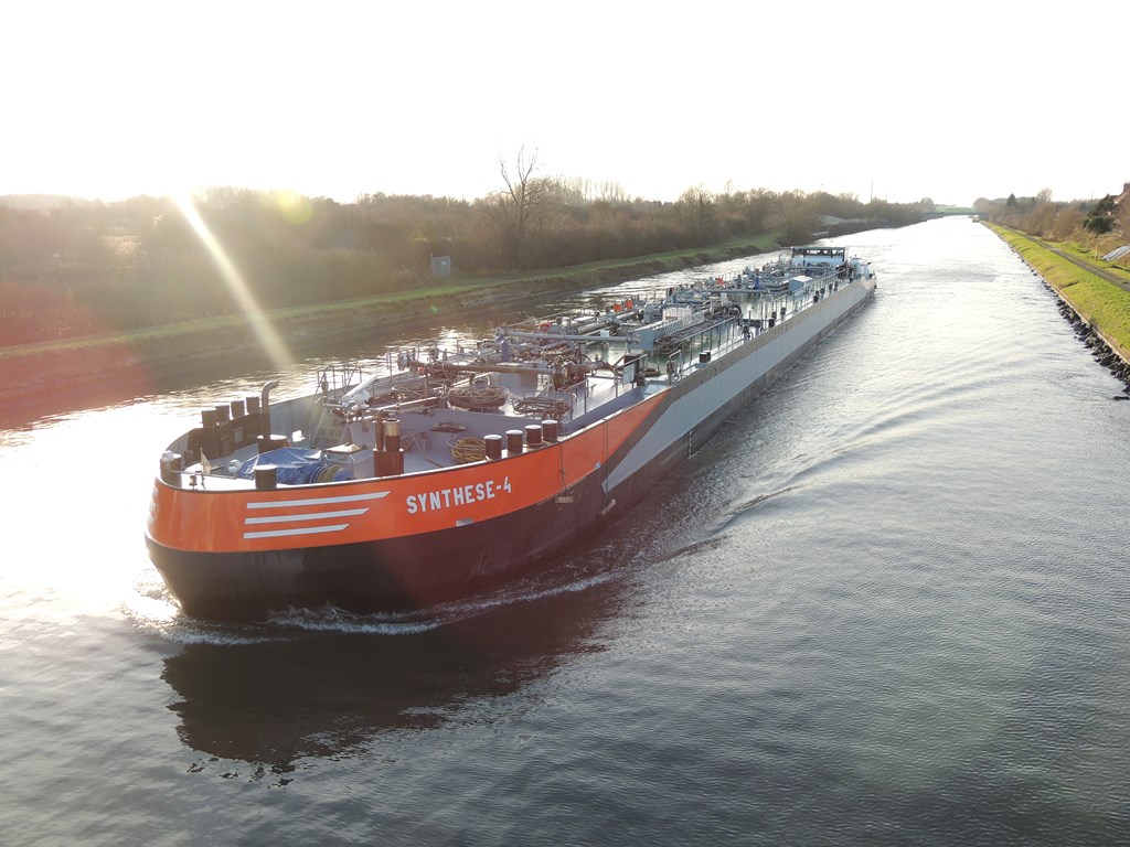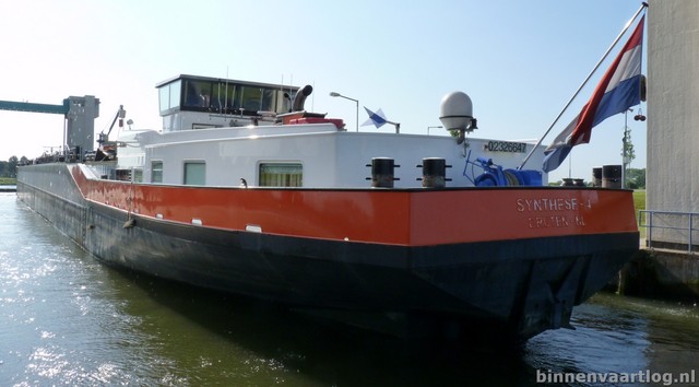 Synthese 4 , 97,49 x 9,50 x 3,09 , 1707 ton , Bouwjaar 2004/2005 , Werf Centromost Stocznia Rzeczna in Plock ( Polen ) en Bodewes in Millingen a/d Rijn ( Nederland ) , 1017 pk Caterpillar , eigenaar Wijgula BV in Druten , ENI 02326647.