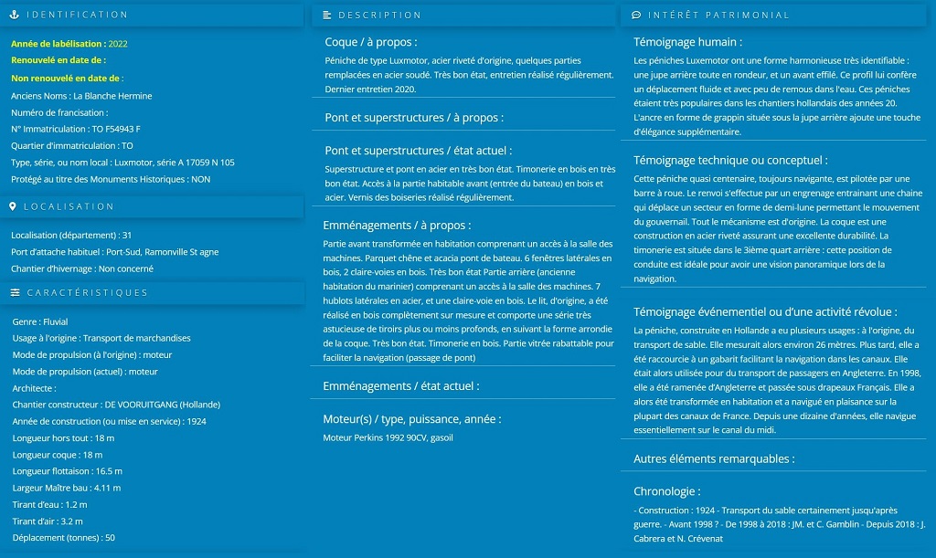 Le SEREINE - TO F54943 F - a été labellisé PATRIMOINE MARITIME ET FLUVIAL en 2022.