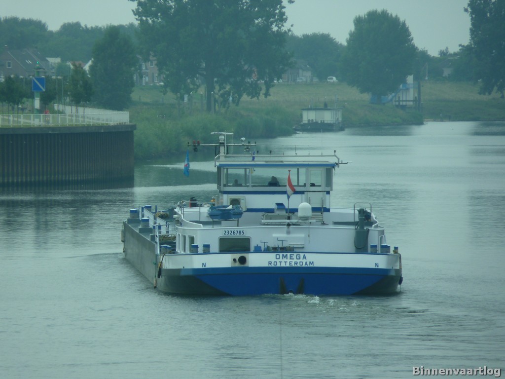 Omega , 85,99x 11,45 x 3,30 , 1980 ton , Bouwjaar 2004 , Werf Santierul Naval Orsova SA in Orsova ( Roemenië ) en scheepswerf Grave in Grave ( Nederland ) , 1380 pk Caterpillar en 535 pk Caterpillar – Verhaar Omega boegschroef , eigenaar Vof. Omega Scheepvaartbedrijf in Rotterdam , ENI 02326785