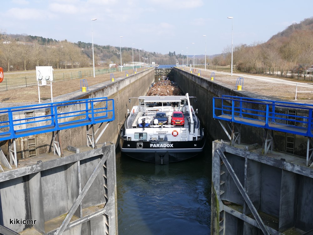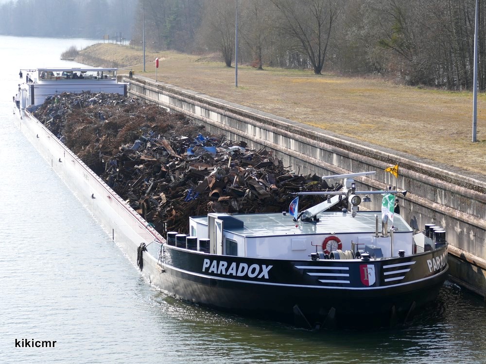 Sur la Moselle à Villey-le-Sec, 15 mars 2015, chargé de ferraille pour l'aciérie de Neuves-Maisons :