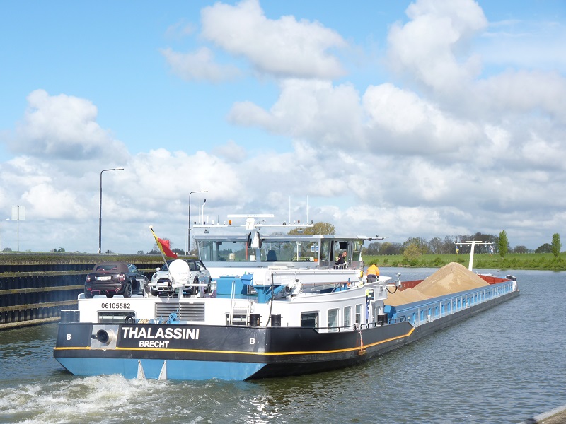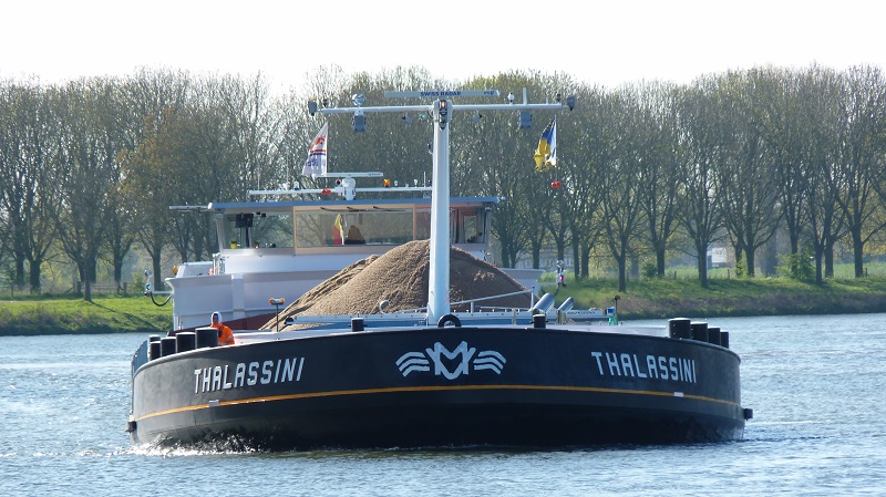 Thalassini , 110,00 x 11,45 x 3,66 , 3230 ton , Bouwjaar 2017 , Werf Santierul Naval Orsova SA in Orsova ( Roemenië ) en Dolderman in Dordrecht ( Nederland ) , 1622 pk Caterpillar en 608 pk Caterpillar - Veth-Jet boegschroef , eigenaar Feitelijke Verenigng Thalassini in Brecht , ENI 06105582