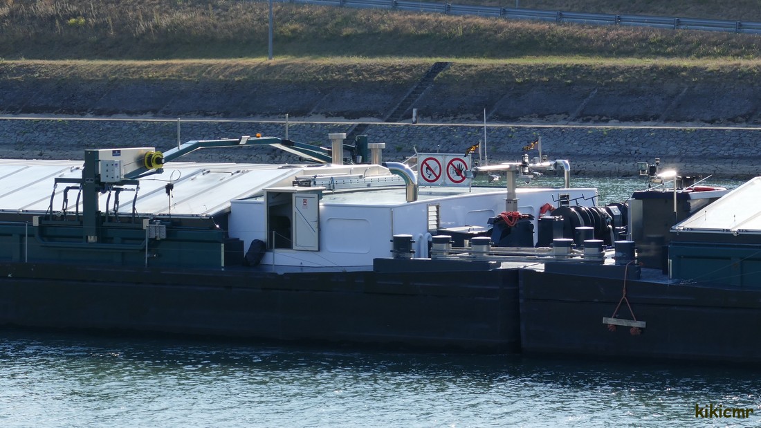 Un convoi-couplé construit en 2017 au Chantier Naval d'Orsova (R) et aménagé par Veka à Werkendam (NL), avalant en juillet 2018 à l'écluse de Fessenheim (68), sur le Grand Canal d'Alsace ; voici l'automoteur-pousseur :