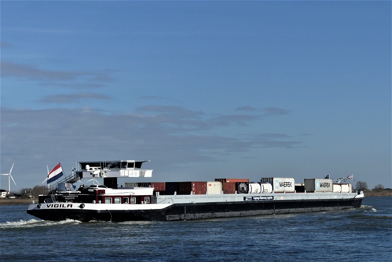Vigila , 135,00 x 14,20 x 3,72 , 5000 ton , Bouwjaar 2008, Werf Astrachan Plant in Astrachan ( Rusland ) en Dolderman in Dordrecht ( Nederland ) , 2 x 1521 pk Caterpillar en 2 x 560 pk Caterpillar – Verhaar Omega-Jet boegschroef , eigenaar Vof. Bosman Vigila in Zwijndrecht , ENI 02330242
