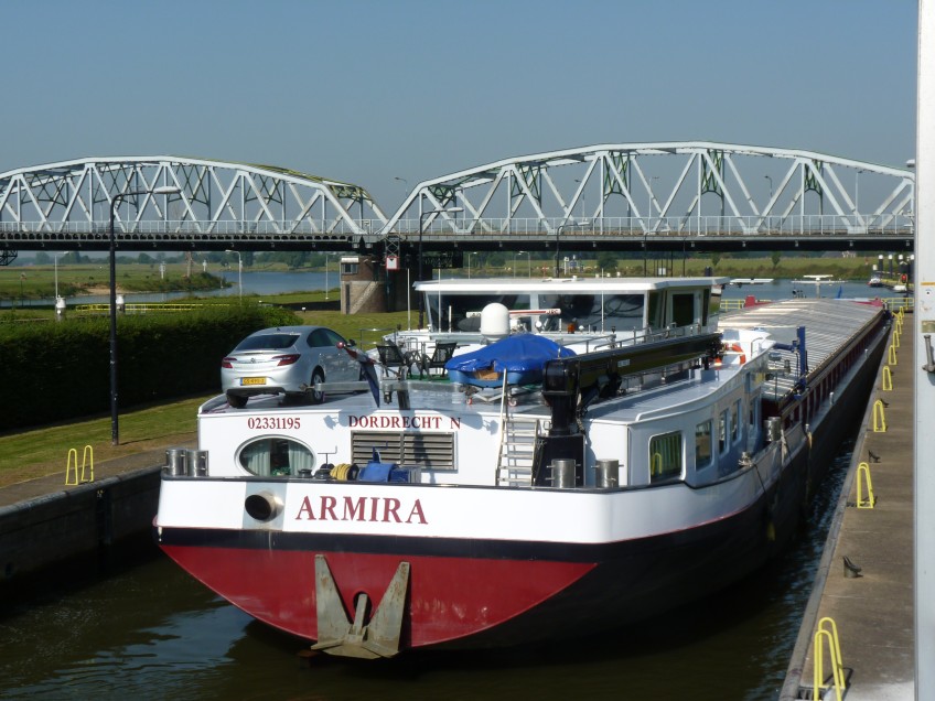 Armira , 110,00 x 11,45 x 3,65 , 3260 ton , Bouwjaar 2008 , Werf Astrachan Plant in Astrachan ( Rusland ) en Dolderman in Dordrecht ( Nederland ) , 1836 pk Caterpillar en 608 pk Caterpillar Verhaar Omega - Jet boegschroef , eigenaar Vof van Veen in Dordrecht, ENI 02331195