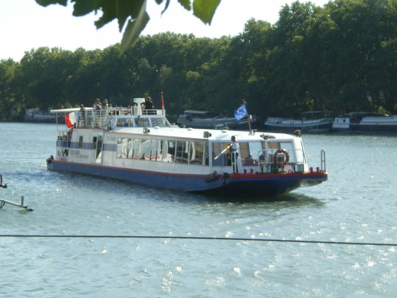 Ce bateau "tourne" sur Avignon et l'ile de la Barthelasse.