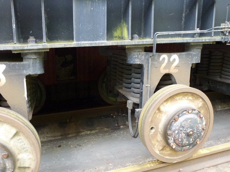 Il y a 2 séries de 59 essieux pour supporter chaque bac. 2 roues par essieux ce qui fait 236 roues par bac et 4 ressorts à chaque essieu, ce qui fait 472 ressorts à boudins par bac. Pensez-y quand vous passerez avec votre bateau. Chantez la chanson du légionnaire.