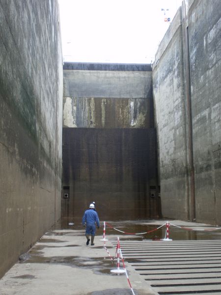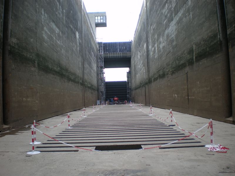 - Vue vers l'aval (du milieu du sas)