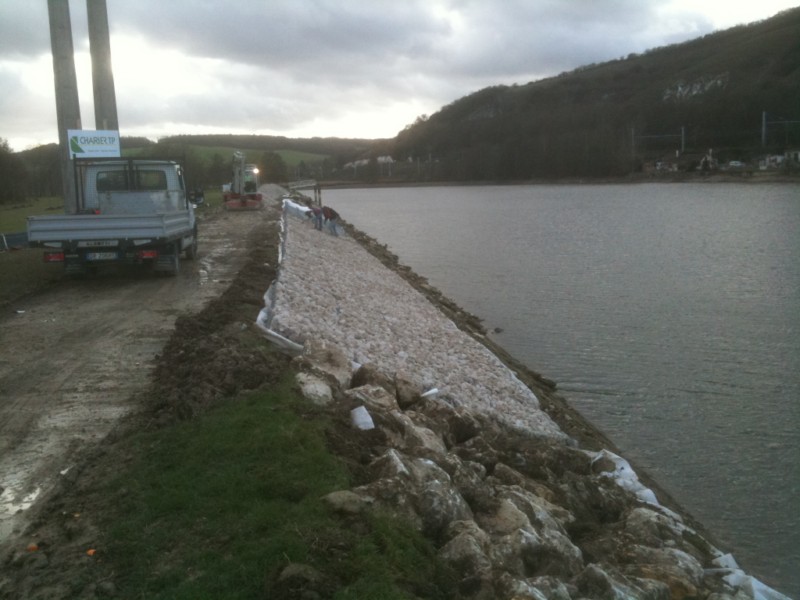 Un chose comme meme, elle n'a pas d'importance maintenant parce que le soubassement en pierre de taille qui etend sur le lit du canal du Pont de Gain sur la derivation, est a 2m, et aujourdhui l'eau etait a moins 2m40 du retenue normale donc pas de risque.