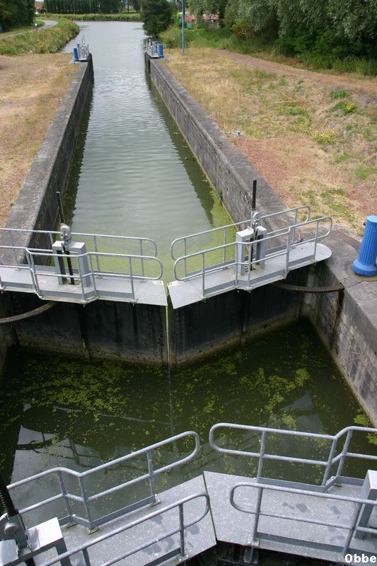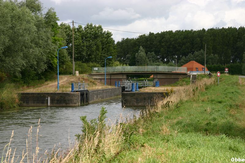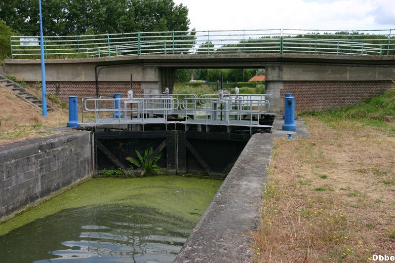 L'écluse du Guindal qui donne accès au canal de Bourbourg en venant de l'AA.
