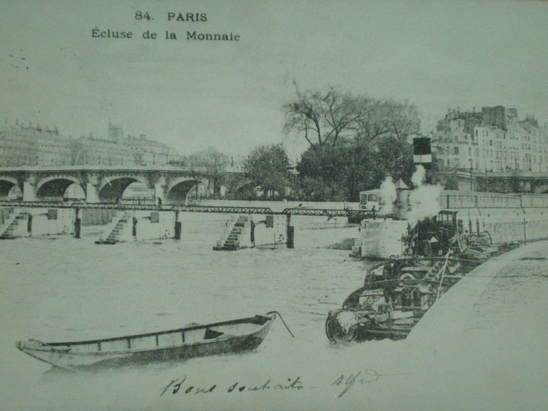 derriere la carte postale ! Une correspondance de ma tante et oncle du bateau TIGRE famille LECUELLE le 29 Novembre 1974 ! incroyable ! dans laquelle ils nous disaient qu'ils avaient charge du laitier a Clabecq pour Port Victor et qu'ils avaient pris du retard car ils etaient tombe en panne de moteur avec le TIGRE (desole Eddy ! pas de matricule ! du moins pas encore !) Et ils nous demandaient si nous n'avions pas eu trop d'eau en Seine (reference aux crues je suppose !)