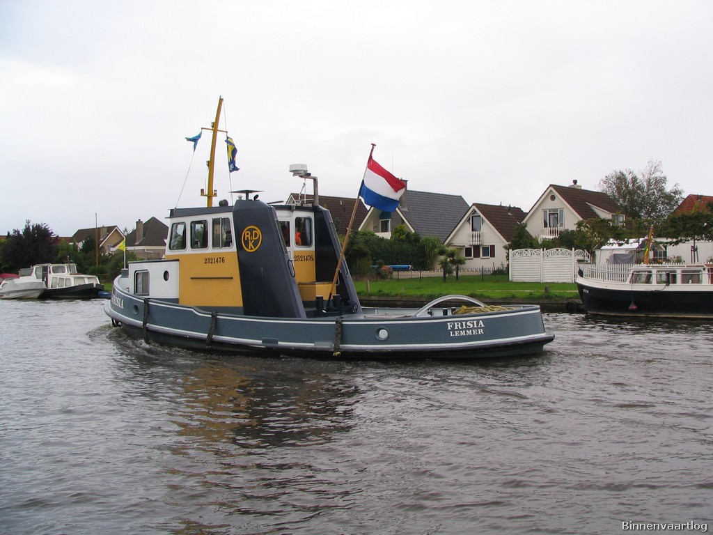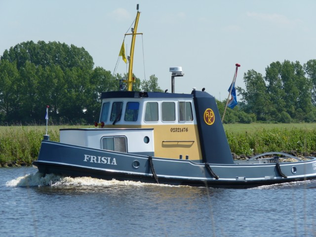 Frisia , 13,26 x 3,60 x 1,63 , Bouwjaar 1960 , Werf Cassens Schiffwerft und Machinenfabrik in Emden ( Duitsland ) , 1 x GM type 6 71 N vermogen 165 pk , ex 1960 Baltrum/Ems-Schlepper AG., Emden Duitsland , eigenaar R.W. Knobbe in Lemmer , ENI 02321476