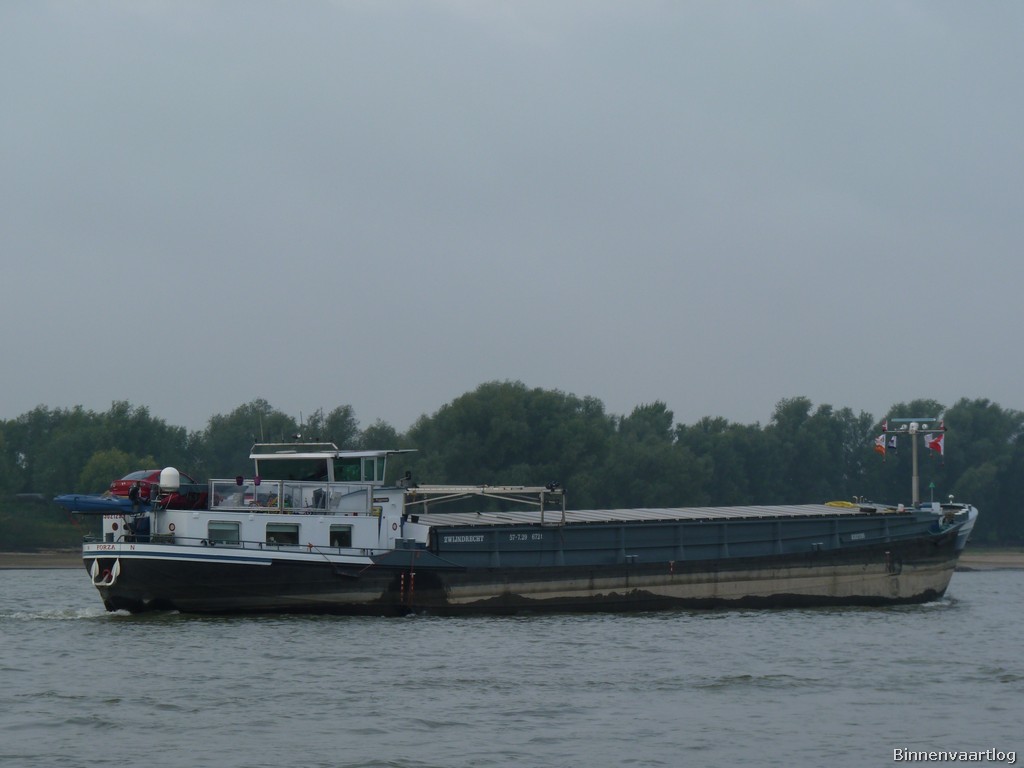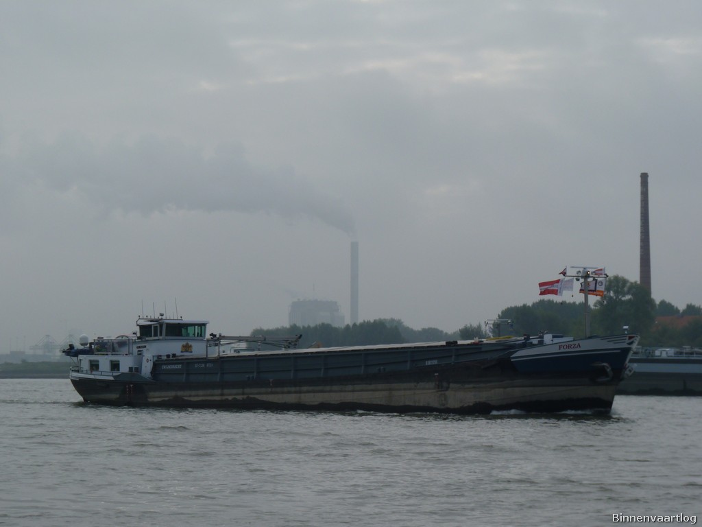 Forza , 57,04 x 7,29 x 2,61 , 672 ton , Bouwjaar 1961 , Werf Haak in Zaandam ( Nederland ) , 680 pk Caterpillar en 150 pk Scania boegschroef , ex Onderneming III , ex Carpe Diem , ex Leny , eigenaar Peggeman in Zwijndrecht , ENI 03021295