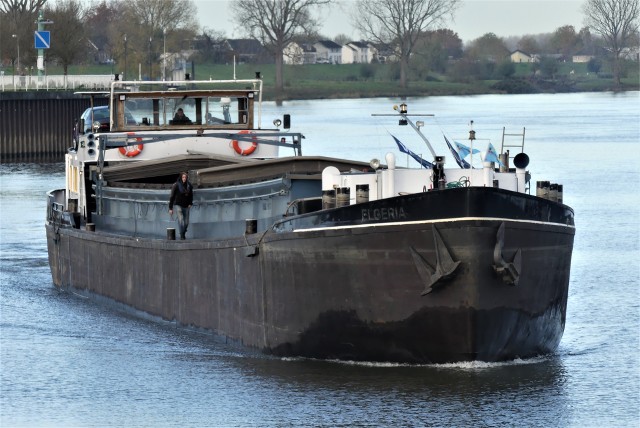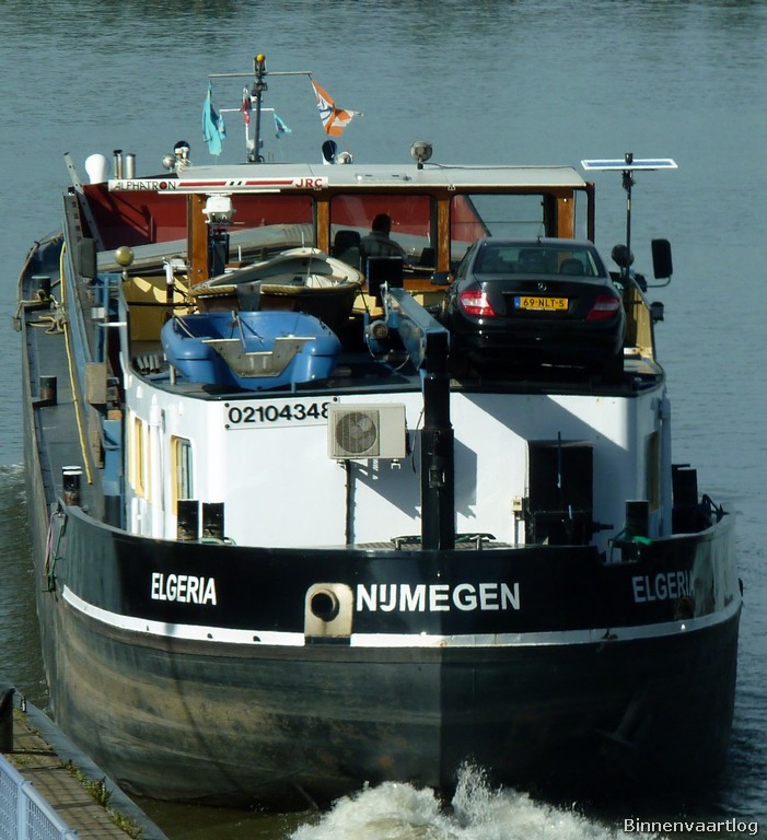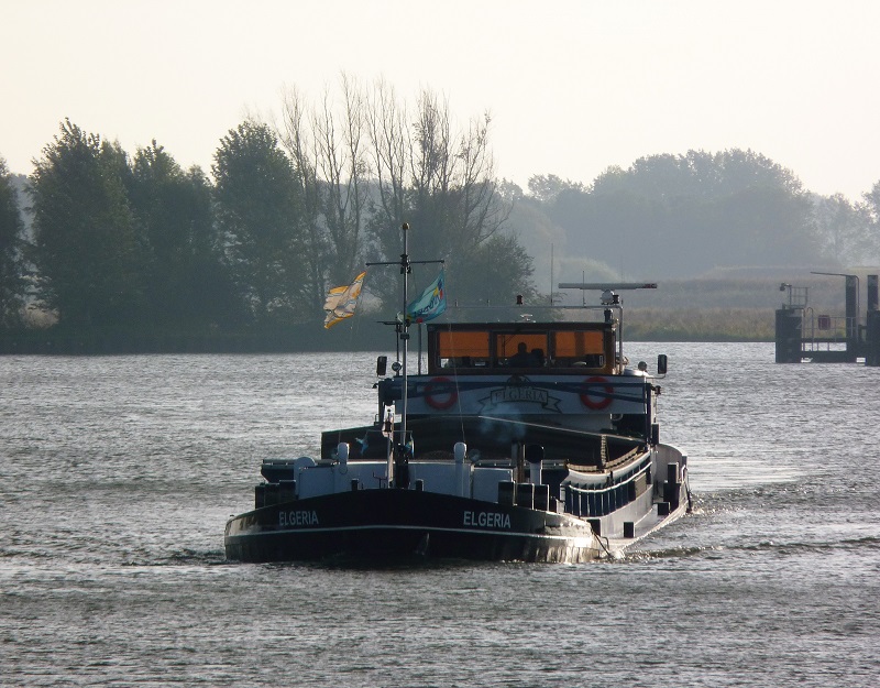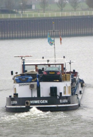 Elgeria , 69,96 x 7,08 x 2,76 , 906 ton , Bouwjaar 1948 , Werf Ingalls Shipbuilding in Alabama ( Amerika ) en De Biesbosch BV in Dordrecht ( Nederland ) , 520 pk Caterpillar en 260 pk DAF boegschroef , ex Savigny , ex SNFR 709 Savigny , ex La Boheme , ex Hermanna , ex Saron K , ex Jan.Sr , ex Taurus , ex Alblasserwaard , eigenaar Elgeria Vof in Nijmegen , ENI 02104348