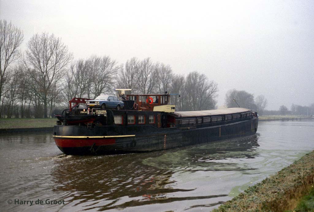 Veluwe , 69,96 x 7,08 x 2,76 , 906 ton , Bouwjaar 1948 , Werf Ingalls Shipbuilding in Alabama ( Amerika ) en De Biesbosch BV in Dordrecht ( Nederland ) , 520 pk Caterpillar en 260 pk DAF boegschroef , ex Savigny , ex SNFR 709 Savigny , ex La Boheme , ex Hermanna , ex Saron K , ex Jan.Sr , ex Taurus , ex Alblasserwaard , ex Elgeria , eigenaar J.Wassink in? , ENI 02104348