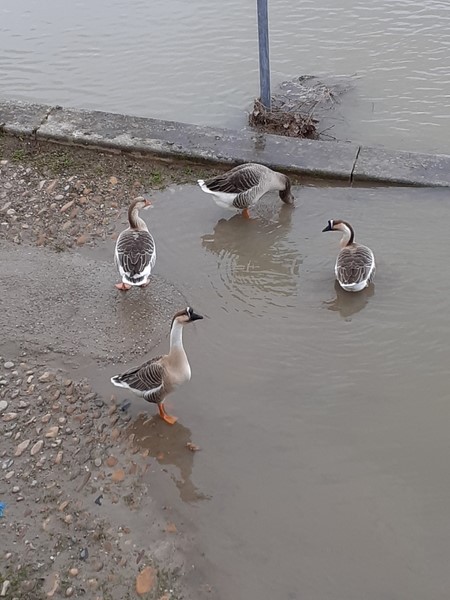 Baron a vu des oies sauvages sur le "parking" de Serrières. Des ponts, vu de l'amont et de l'aval.