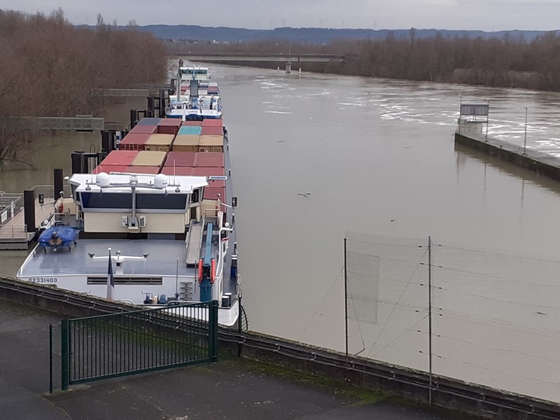 Des bateaux en aval de Sablons, bloqués à cause des RNPC.