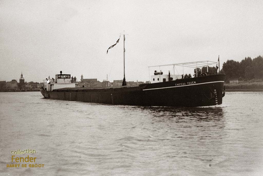 Frisia , 73,32 x 8,15 x 2,81 , 958 ton , Bouwjaar 1949 , Werf De Biesbosch in Dordrecht ( Nederland ) , 600 pk GM , ex Chateau Yquem , ex SSA 23 – Chateau Yquem , ex 2 x Chateau Yquem , eigenaar R.W. Knobbe in Lemmer , ENI 02314090.