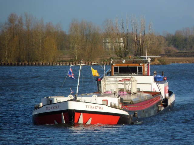 Tyda Kyra , 60,00 x 7,25 x 2,62 , 725 ton , Bouwjaar 1964 , Werf T.van.Duijvendijk in Lekkerkerk ( Nederland ) , ex Hoop op Zegen , ex Thuredregt , ex Carmen , ex Branding , eigenaar Vof Tyda Kyra in Barneveld , ENI 02311791