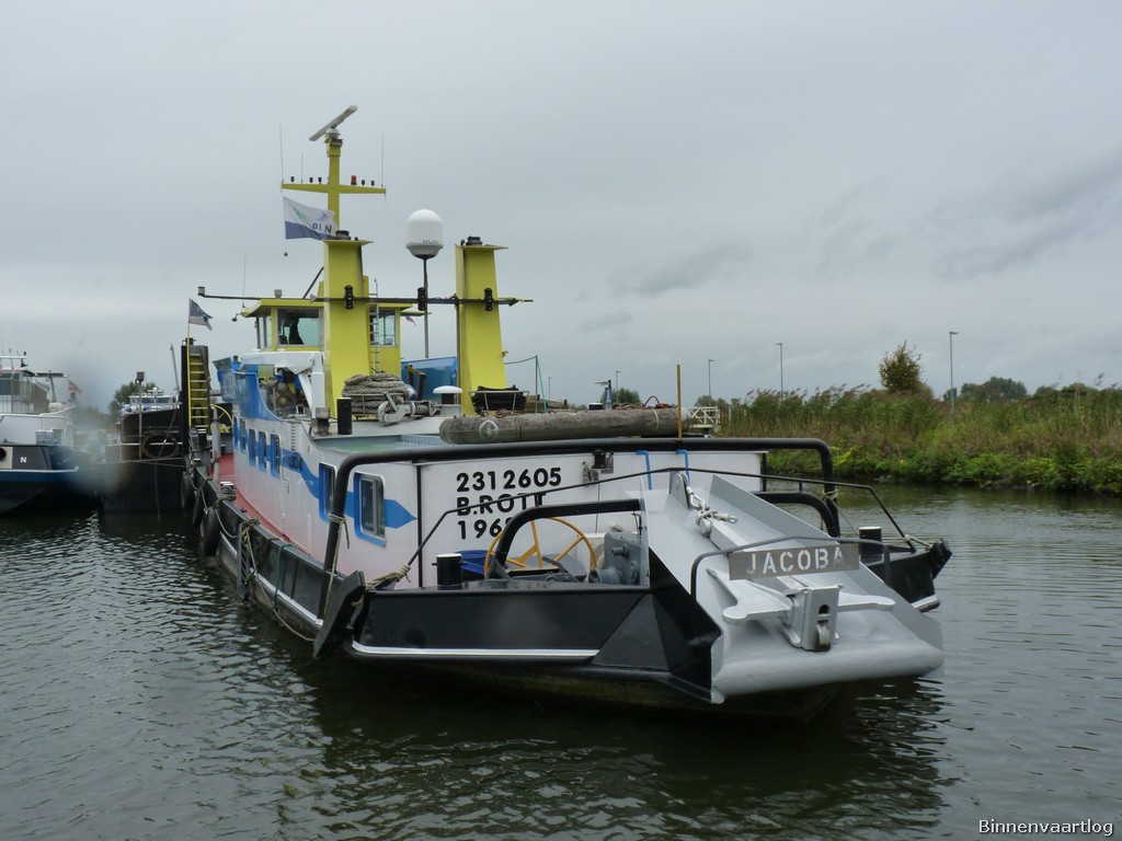 Jacoba , 27,92 x 6,60 x 2,09 , 20 ton , Bouwjaar 1957 , Werf Gustavsburg in Mainz-Gustavsburg ( Duitsland ) , 730 pk GM , ex Rhenania IV , ex Bonaire , ex 2 x Antonie , ex Bonaire , ex 2 x Jacoba , eigenaar Vof. van Duinen in Rotterdam , ENI 02312605