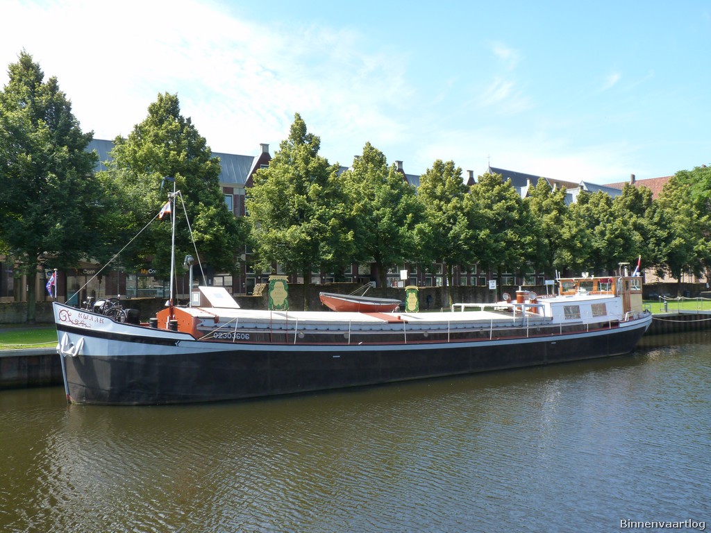Kwaak , 31,48 x 5,25 x 1,66 , 201 ton , Bouwjaar 1904 , Werf ? in Zoeterwoude ( Nederland ) , 120 pk DAF , ex Alberta , ex Ida , ex Harma , ex Nooit Gedacht , eigenaar E & H.Zwiers in Zwolle , ENI 02303606