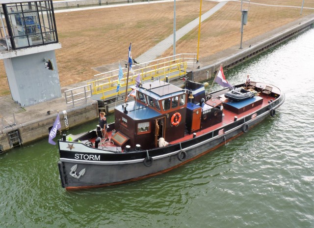 Storm , 19,43 x 4,80 x 2,00 , Bouwjaar 1909 , Werf van der Schuyt in Papendrecht ( Nederland ) , 235 pk Stork , ex Unser Fritz , ex IJsselmeer , ex Beran , ex Benny , ex Jetty , ex Immanuel , ex Zephyrus , ex Orion , ex Trijnko II , ex Martin , ex Ronald , ex Brizo , ex Ferna , eigenaar ? in ? , ENI 02014618