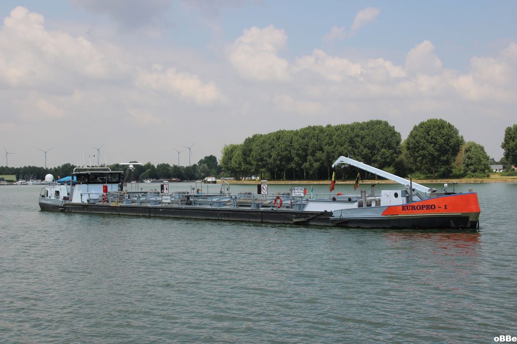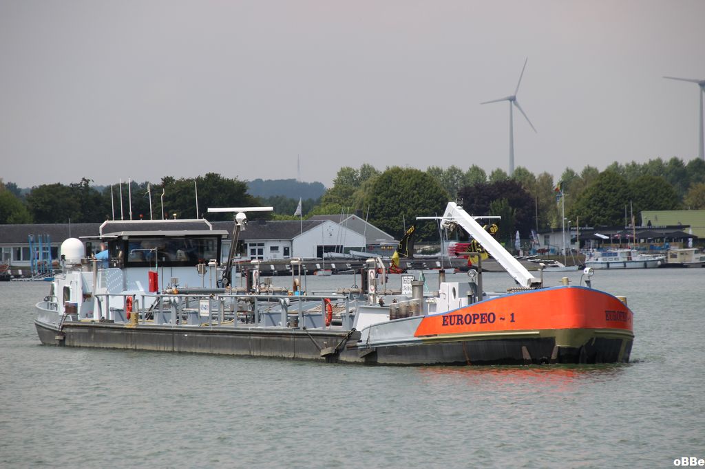 Europeo 1 , 54,21 x 6,54 x 2,80 , 654 ton , Bouwjaar 1964 , Werf Lubbe Voss in Aurich ( Duitsland ) , 450 pk Scania Vabis , ex Hildegard , eigenaar De Ridder Groep NV in Berchem , ENI 06503382