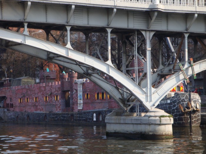 Voilà un bateau pirate château qui joue à cache cache avec la passerelle