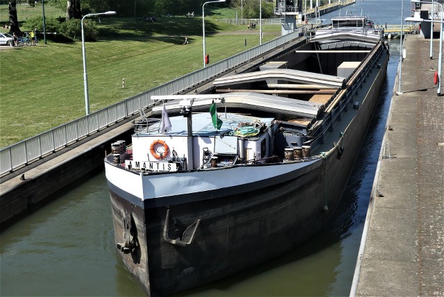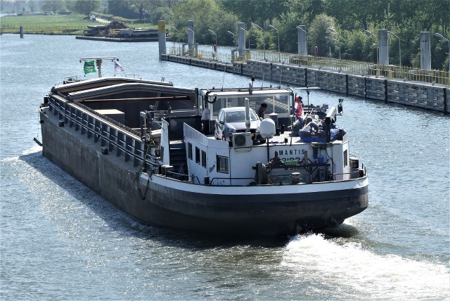 Amantis , 79,39 9,63 x 3,16 , 1648 ton , Bouwjaar 1926 , Werf Gebr. Sachsenberg in Rosslau ( Duitsland ) , 970 pk Caterpillar en 320 pk DAF boegschroef , ex Neptun , ex Rhenania XV – Peter Kuppers , ex Taxandria , ex Birjo , ex Adio , ex Chilandia , ex Steinburg , ex Moonlight , ex Keola , ex Lady Inge , ex Vintana , eigenaar Vof Schoenmaker in Maasbracht , ENI 02318361