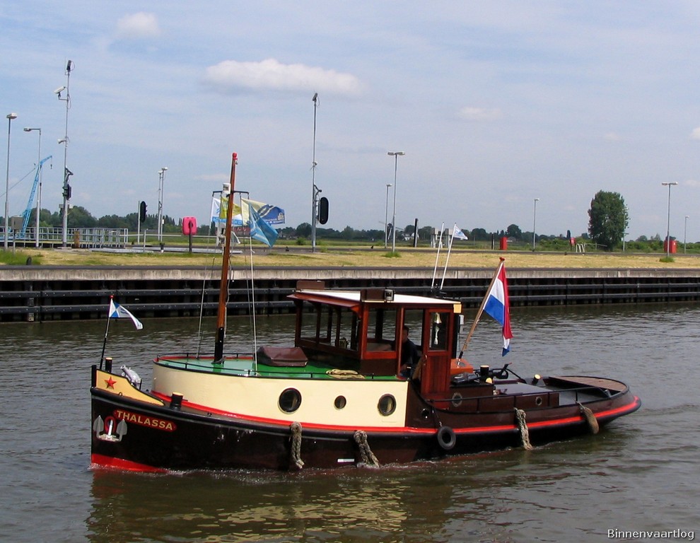 Thalassa , 11,92 , 3,20 x 1,50 , Bouwjaar 1930 , Werf Nicolaas Witsen in Alkmaar ( Nederland ) , 120 pk DAF , ex Ancor , ex Addi , ex Anja , ex Joma , ex Ouwerkerk , ex Christina , eigenaar B.Vervoort in Venlo , ENI 02102295