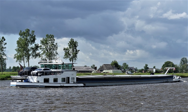 El-Viajero , 80,00 x 8,20 x 2,57, Bouwjaar 1955 , Werf Schiff-& Maschinebau in Neckarsulm ( Duitsland ) , 964 pk Mitsubishi en 320 pk DAF boegschroef , ex H & E Loffelhardt 1 , ex Inka , ex Christina , ex Lucienne D , ex Spranky , ex Estancia , eigenaar ? in Kapelle , ENI 02319615
