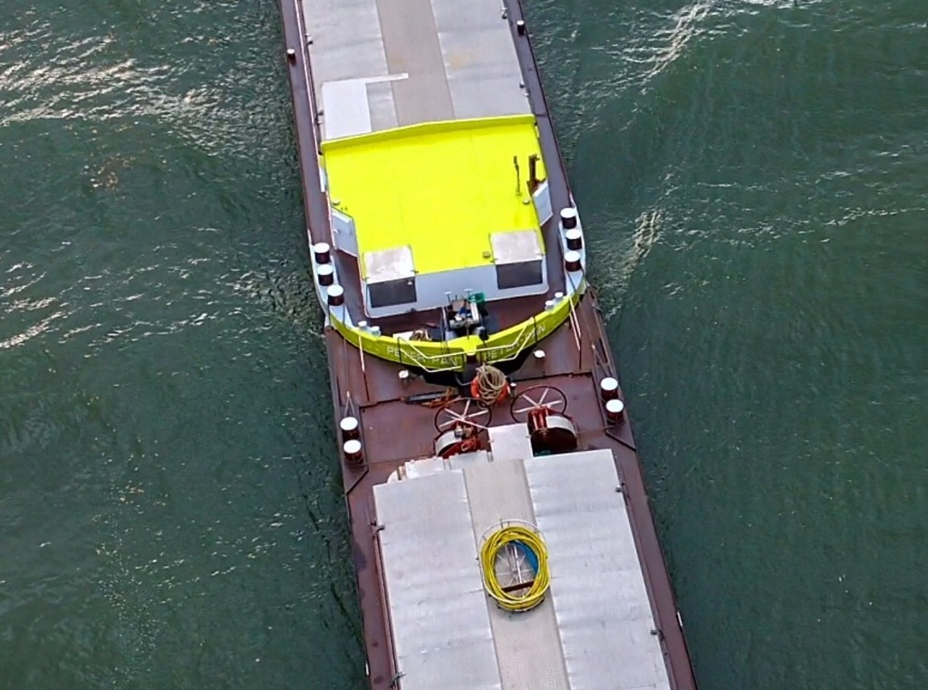 C'est vraiment impressionnant que le pilote puisse guider ce long convoi qui doit avoir une énorme inertie, même à 6 nœuds