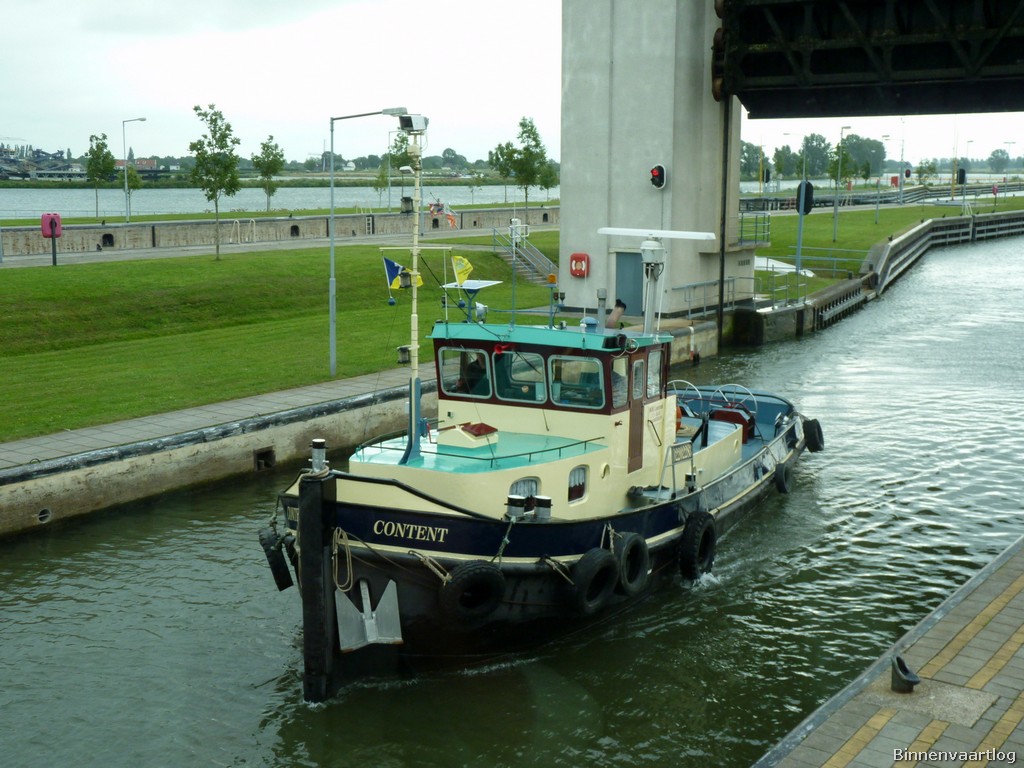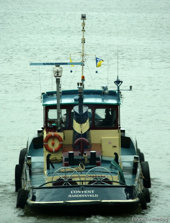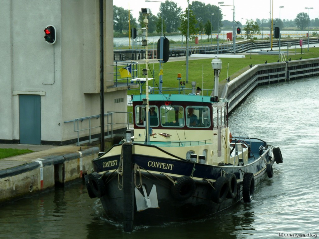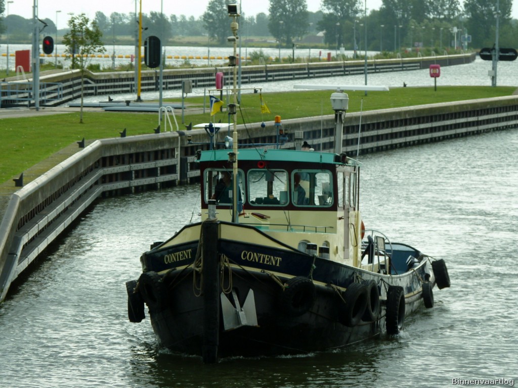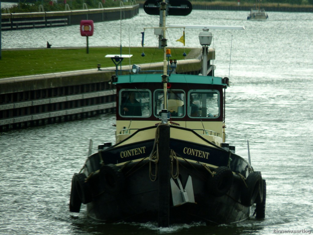 Content , 17,50 x 4,60 x 1,80 , 15 ton , Bouwjaar 1944 , Werf Fikkers in Martenshoek ( Nederland ) , 365 pk Caterpillar , ex Beistadfjord , ex Jasperina , ex Jose , ex Salland IV , ex Ja-Fo , ex Infra , ex V.H. 75 , ex Paes 4 , eigenaar W. Leenman in Hardinxveld-Giessendam , ENI 02202283