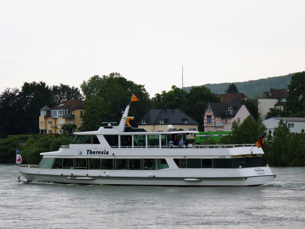 Theresia , 36,80 x 8,20 x 1,25 , Bouwjaar 1997 , Werf Lux Werft in Mondorf ( Duitsland ) , 2 x 250 pk MAN , eigenaar Franz Schmitz Personenschifffahrt in Königswinter , ENI 04307290