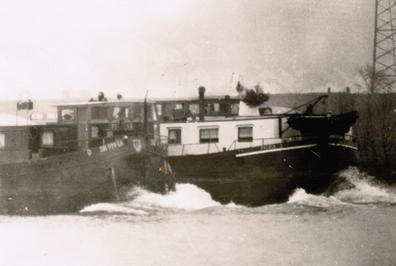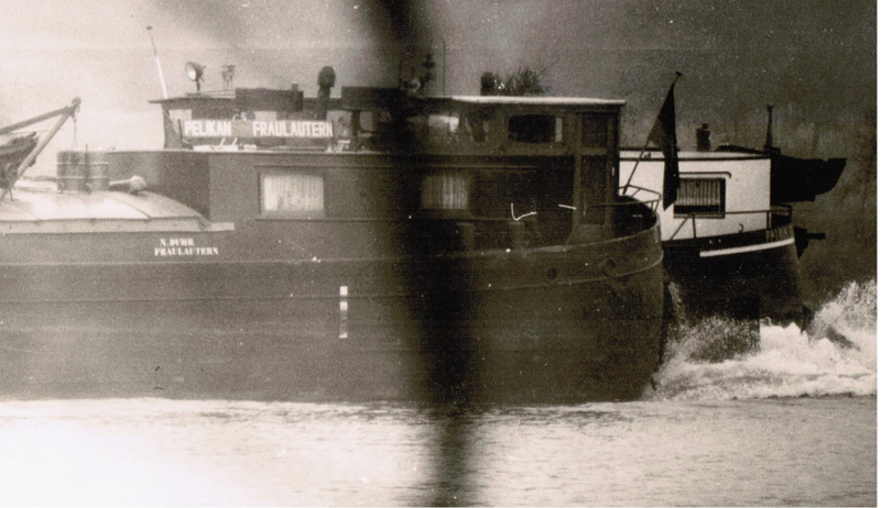 Sur les photos, le PATRIA va ensemble avec le PELIKAN, un autre sarrois pas sur le forum, sur la Moselle, après 1966, parce que la motorisation du PATRIA était en 1966. On utilisait un Deutz avec 212 cv. Le PATRIA était une péniche très vite et allait 16-17 km/h à vide (on dit "ein guter Läufer" = un bon marcheur). A babord PELIKAN, le PATRIA est à tribord.
