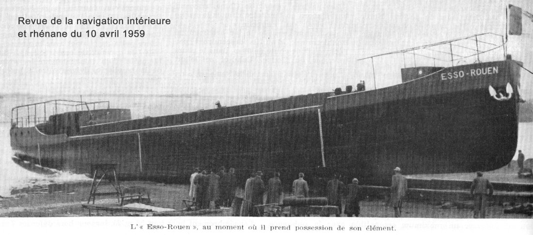 ESSO ROUEN dans la Revue de la Navigation intérieure et rhénane du 10 avril 1959, à l'occasion de sa mise à l'eau :