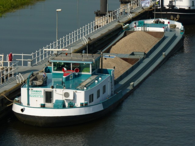 Chamari , 58,05 x 7,79 x 2,78 , 826 ton , Bouwjaar 1961 , Werf Voorwaarts in Martenshoek ( Nederland ) , 481 pk Daewoo en 220 pk DAF boegschroef , ex Wezet 1 , ex Rewald , eigenaar Duizendstra Tromp Vof in Gramsbergen , ENI 02203735