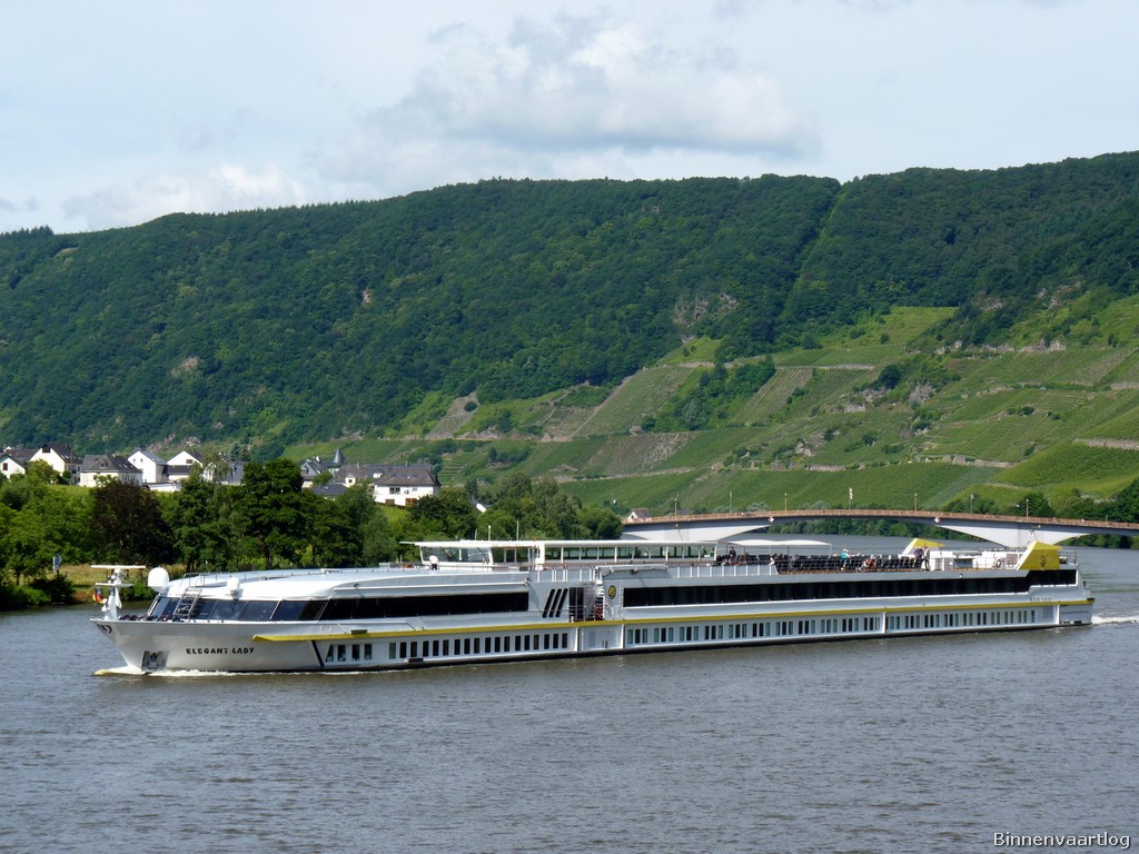 Elegant Lady , 110,00 x 11,40 x 1,65 , Bouwjaar 2003 , Werf Grave BV in Grave ( Nederland ) , 2 x 973 pk Caterpillar en ? pk Caterpillar Veth-Jet , eigenaar Dunav Tours in Rousse , ENI 08923003