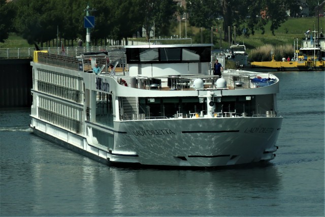 Lady Diletta , 135,00 x 11,40 x 1,60 , 173 personen , Bouwjaar 2020 , Werf Vahali in Zasavica ( Serbia ) , 2 x 1050 pk Caterpillar type 3508 , 173 passagiers , eigenaar Ligabue in Italië , ENI 02338554