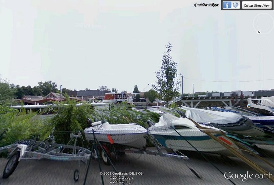 Mais revenons-en au bateau : d'après ce qu'on peut lire sur le Binnenschifferforum, ICI, il a été construit en 1937 au chantier Werf de Rotterdam. Le dernier commentaire indique même qu'il se trouve aujourd'hui chez Koejac, à Strasbourg ; on peut d'ailleurs le retrouver grâce à la fonction Street View de Google :