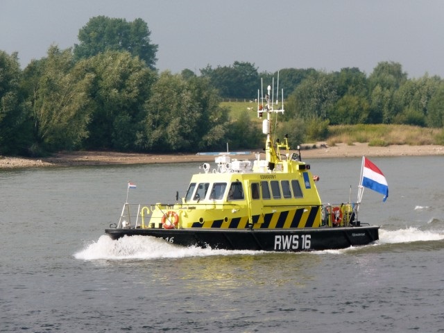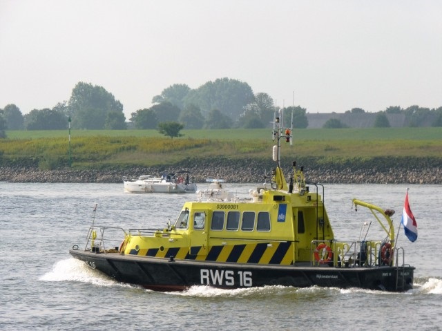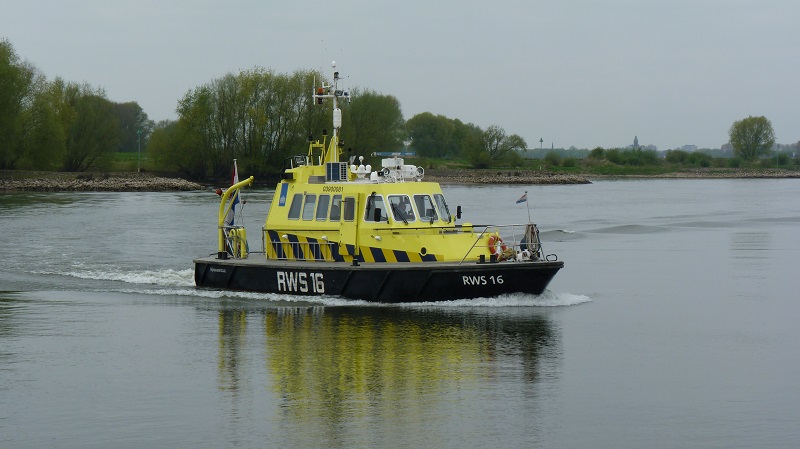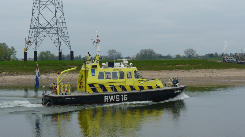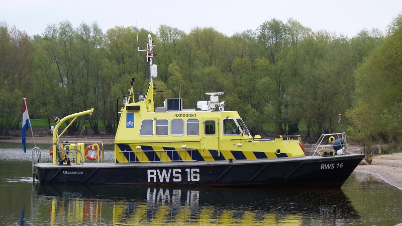 RWS 16 , 14,95 x 4,08 x 1,36 , Bouwjaar 1982 , Werf van Mill in Hardinxveld ( Nederland ) , 2 x 341 pk ? , eigenaar V & W RWS dir Zuid Holland in Den Haag