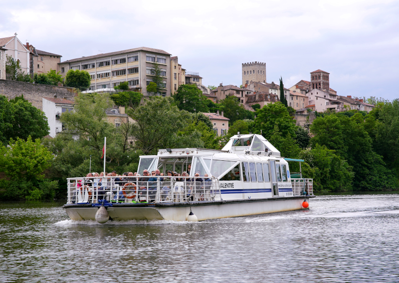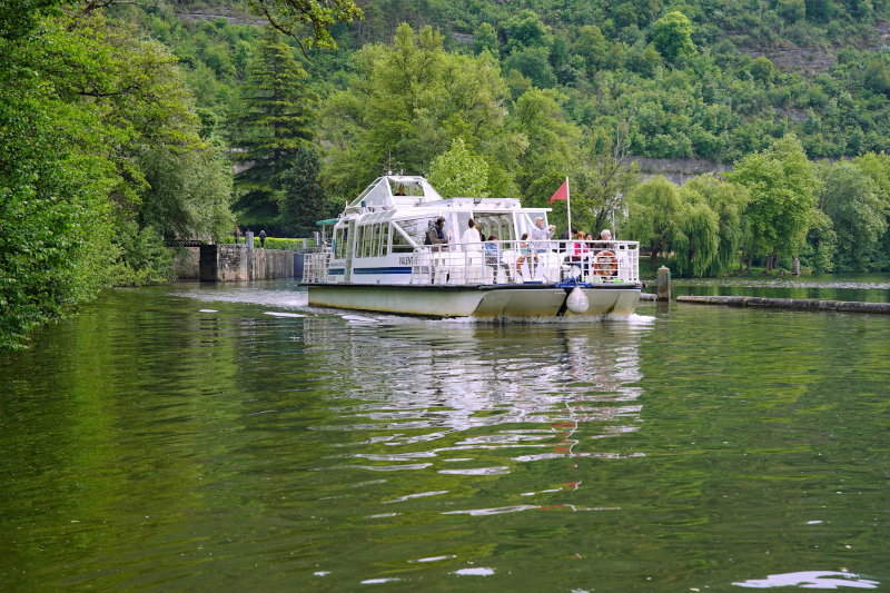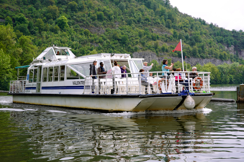 Un bateau promenade qui navigue sur le Lot dans la région de Cahors.