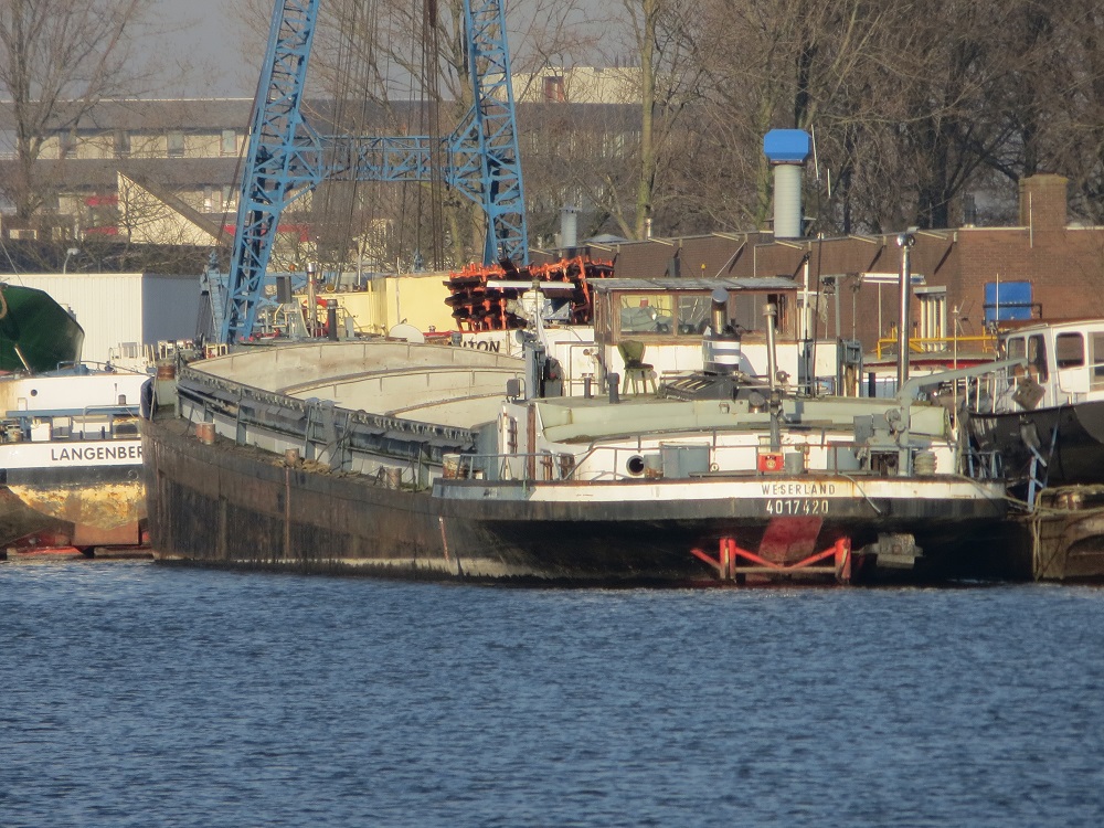 Weserland , 67.08 x 8,20 x 2,52 , 881 ton , Bouwjaar 1943 , Werf Vergauwen & Zn in Boom ( Belgie ) , 500 pk Deutz , ex ? , eigenaar M. Asche in Petershagen , ENI 04017420