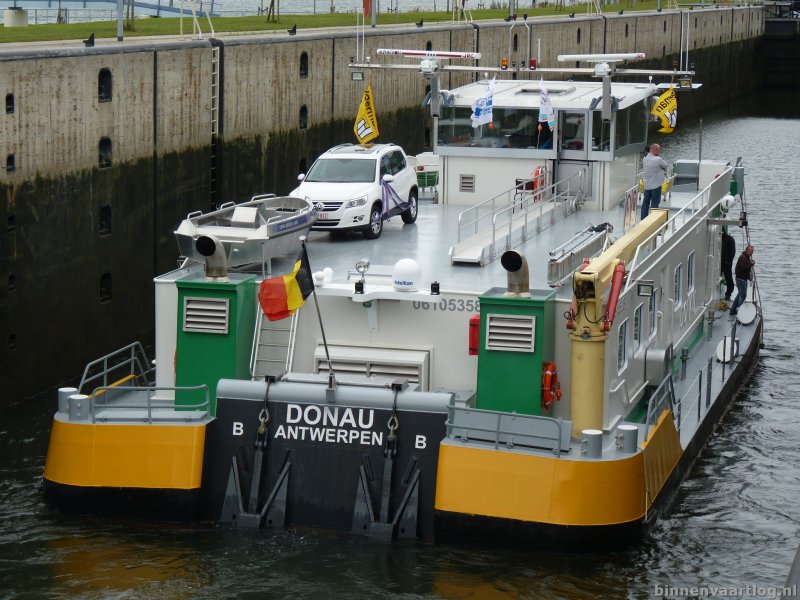 Donau , 22,50 x 10,04 x 2,20 , 74 ton , Bouwjaar 2012 , Werf ? in ? ( China ) en Dolderman Dordrecht ( Nederland ) , 2 x 1100 pk Caterpillar en 540 pk Caterpillar boegschroef , eigenaar Frank Rycquart in Antwerpen , ENI 06105358